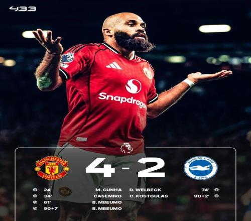 北京时间10月26日,英超第9轮比赛,曼联主场4-2击败布莱顿,豪取三连胜,暂居英超第4位。考虑到布莱顿在客场已经连赢3次曼联,这场比赛一开始双方就展开了激烈的控球争夺,布莱顿试图诱使曼联压上,而阿莫林的球队则坚持长传战术。20分钟后,库尼亚为红魔首开纪录,打入曼联生涯首球。大约15分钟后,卡塞米罗通过一记远射折射破门,将比分扩大为2-0。