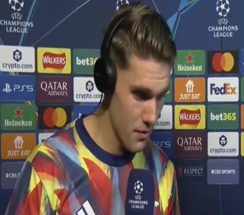 在主场4-0战胜马竞的赛后,本场比赛打进两粒进球的阿森纳前锋哲凯赖什接受了CBS sports的采访。欢迎来到节目,维克托!先和观众们打个招呼吧。大家好!今天太出色了,梅开二度帮助球