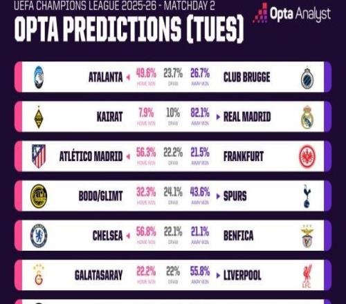 北京时间10月1日,2025-26赛季欧冠联赛阶段第2轮先赛9场。在几场豪门的比赛中,皇马、拜仁在客场大胜弱旅;国米同样取得开局2连胜;十人切尔西在主场1-0击败穆帅的本菲卡获得欧冠首