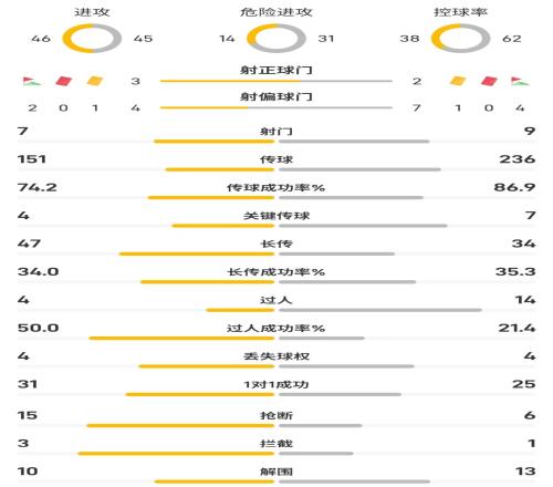 加拉塔萨雷vs红军半场数据:红军控球率62%、射门79