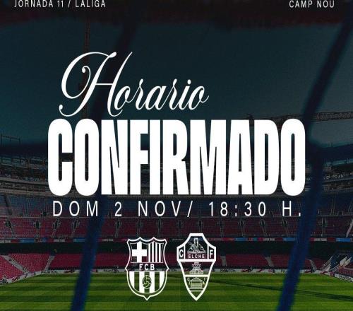 雷速体育10月1日宣 西甲官方今日官宣第11轮各场比赛的开球时间,其中巴塞罗那主场对阵埃尔切的比赛将于北京时间11月3日凌晨00:30开球。埃尔切官方随即在社媒宣布,球队将于当地